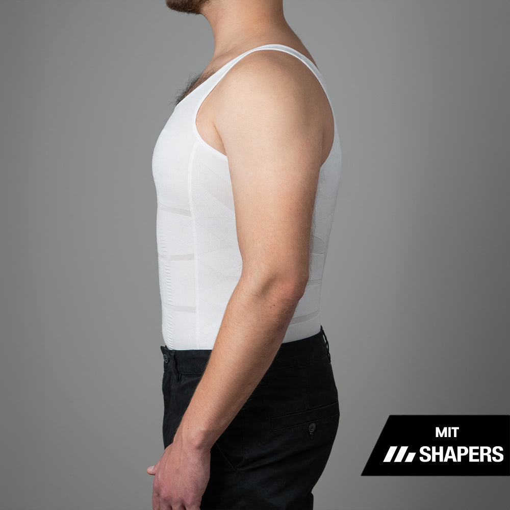 Unser SHAPERS Unterhemd ist speziell entwickelt, um deinen Körper zu formen, zu straffen und gleichzeitig maximalen Komfort zu bieten. Durch die Kombination aus hochwertigem Premium-Stretchstoff und doppellagigem Gewebe passt sich das Shirt perfekt deiner Körperform an, glättet Problemzonen und betont die natürliche Silhouette. Dazu verhilft es dir zu einer besseren Haltung.